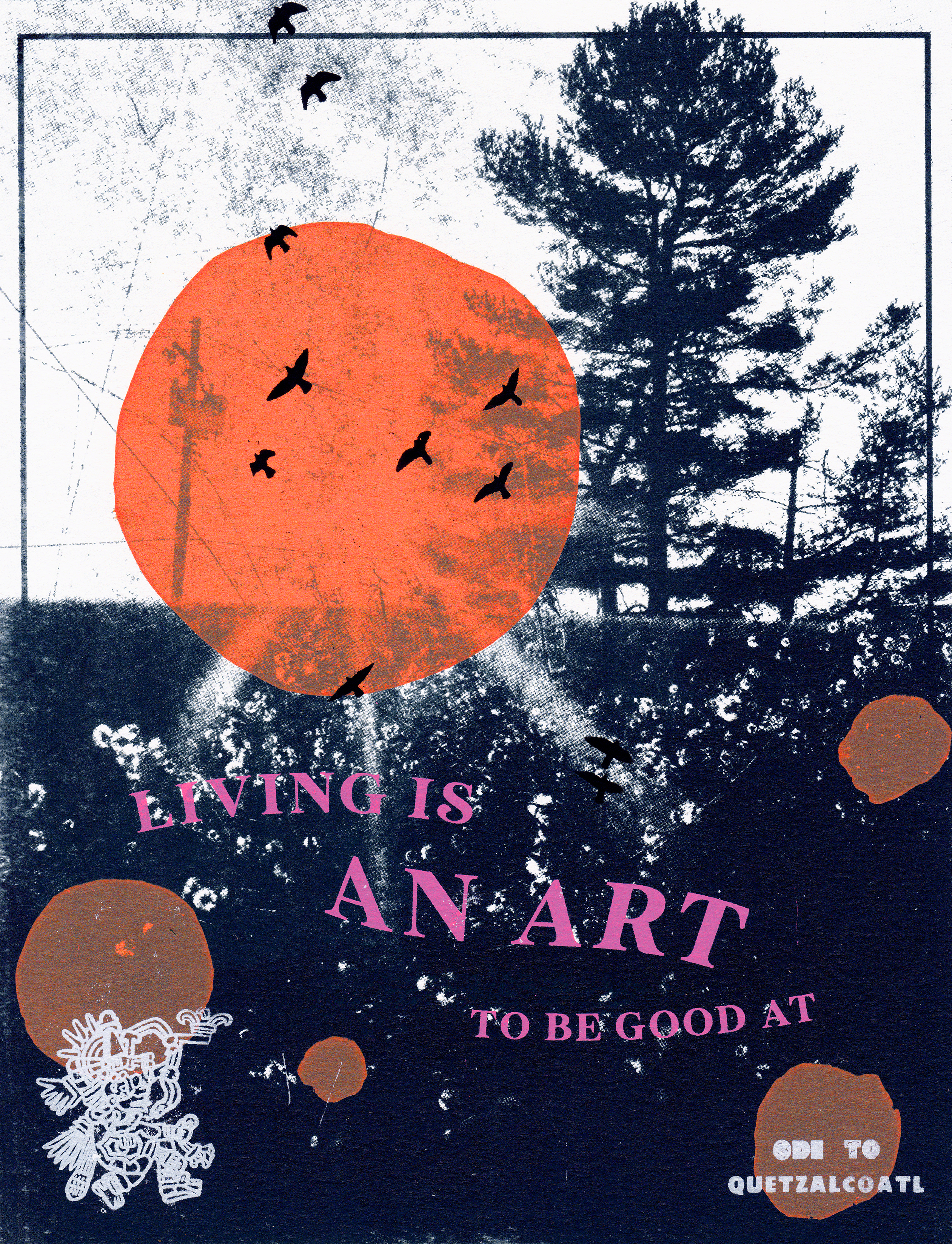 A five layer screen printed poster inspired by Dave Bixby’s song Morning Sun. The song talks about finding a sense of purpose in order to live. In Bixby’s case it was finding God and discovering a new found appreciation for the earth and all the love in it.