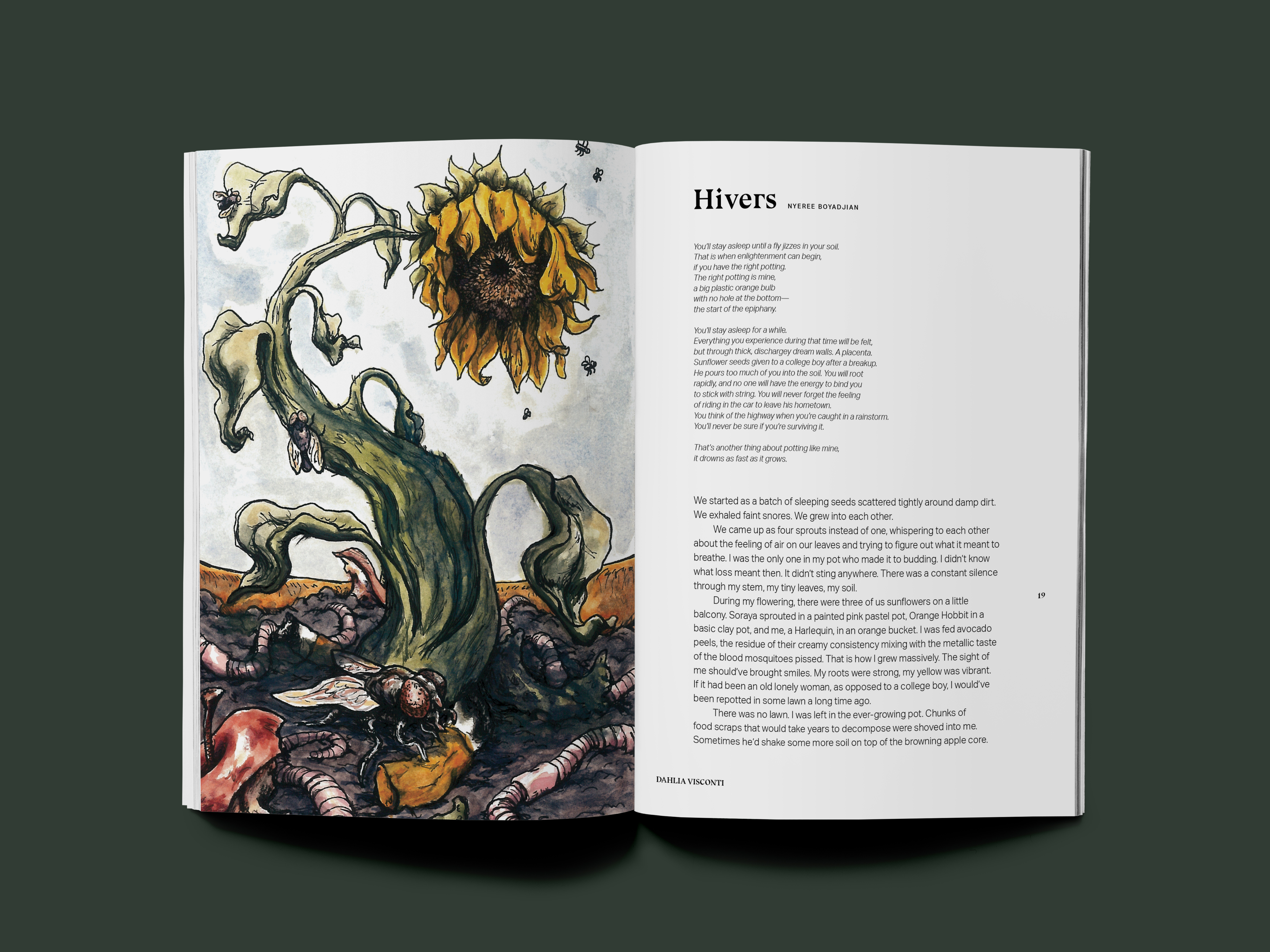 is a student literary magazine of the University of the Arts, published each spring by the Creative Writing Program. Students in Creative Writing and Graphic Design serve as each year's co-editors and designers. The 10th anniversary issue was designed by myself and designer Patric Dempsey along side editors Laura Miller and Mikayla Morell. These are a few choice spreads. The full issue can be view here.